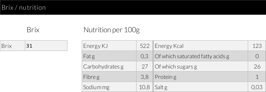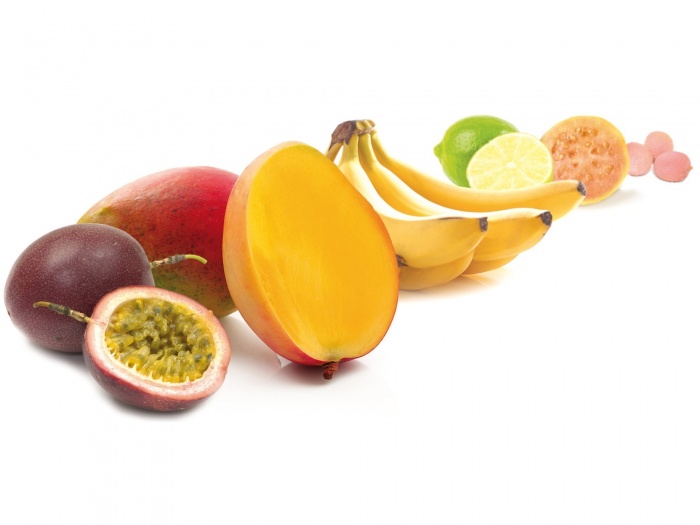 Selection La Fruitière. Made by blending, crushing & refining selected varieties of mango, passion fruit, banana, lime, guava and lychee Exists in: | ||